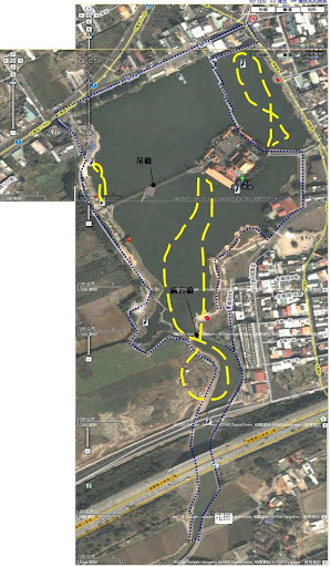 黃色的虛線是大約估計小白鷺的航道...